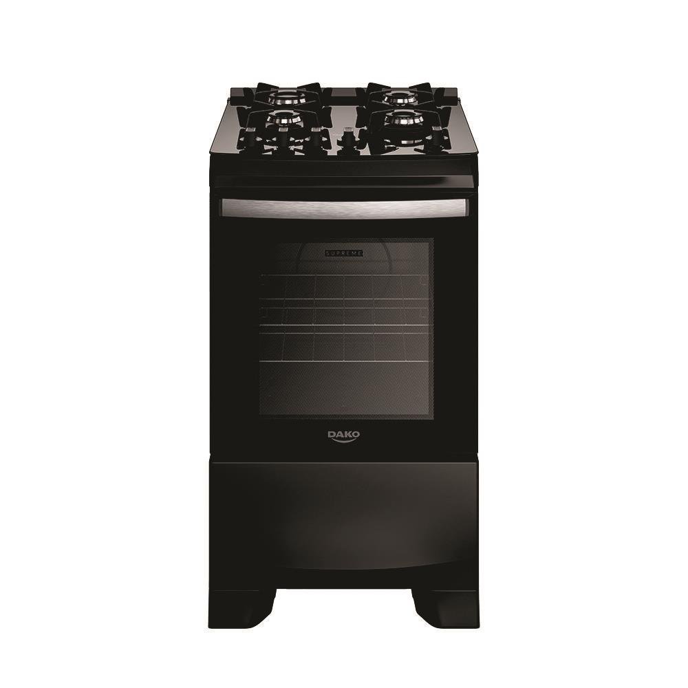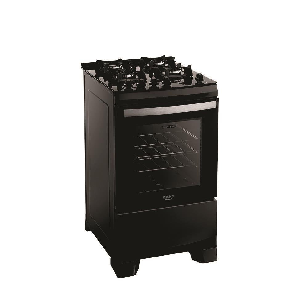 O **Fogão Supreme Glass 4Q – Preto Dako** traz modernidade e eficiência para sua cozinha com design que une beleza e praticidade. Com acabamento em vidro temperado e detalhes em branco, este modelo compacto de 4 bocas se adapta bem a diferentes estilos de decoração, enquanto oferece todas as funções necessárias para seu dia a dia.
