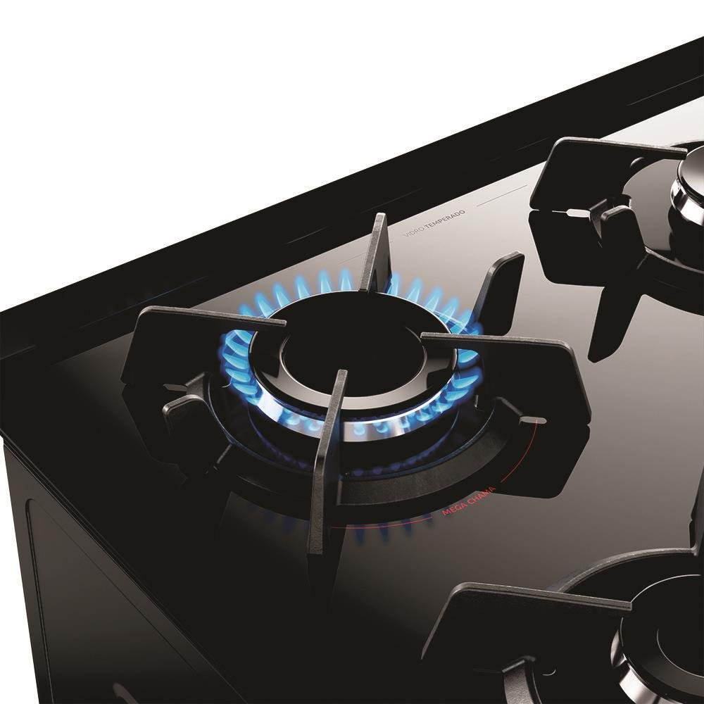 – **Potência que transforma:** Versão 4 bocas com Mega Chama para agilizar seus preparos e versão 5 bocas com a potente Tripla Chama, ideal para receitas que exigem mais calor.