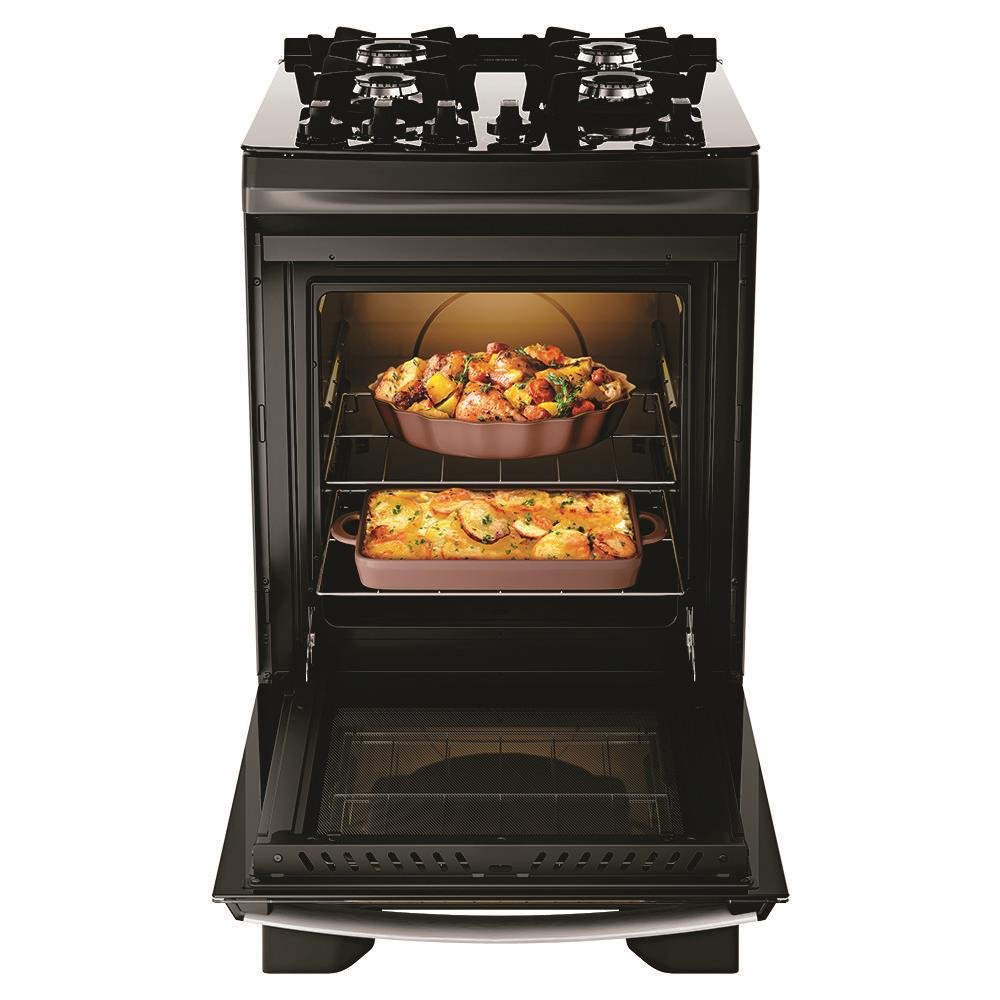 – **Performance e economia:** Forno com acabamento Limpa Fácil e isolamento térmico eficiente, que otimiza a temperatura e reduz o consumo de gás.