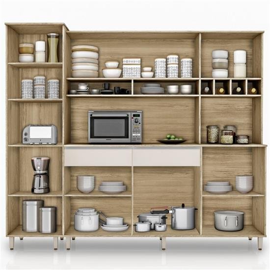 Fabricado com materiais de alta qualidade, o armário oferece resistência e durabilidade. Seu amplo espaço interno conta com nichos estratégicos, portas basculantes e compartimentos bem distribuídos para armazenar utensílios, eletrodomésticos e mantimentos de maneira eficiente.