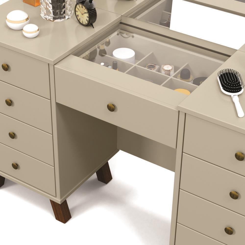 A Penteadeira Camarim Eloá é um verdadeiro símbolo de beleza e sofisticação, projetada para iluminar o dia a dia, assim como as mulheres são naturalmente iluminadas. Com um design elegante e funcionalidades pensadas para oferecer a melhor experiência, esta penteadeira é o complemento perfeito para qualquer ambiente.